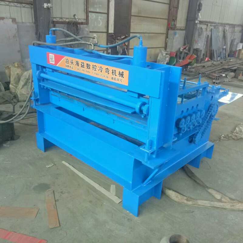 海益校平机利用多辊工作原理,使板料在上、下校平辊之间反复变形,应力,达到校平的目的。在上、下排工作辊外侧,设刚性支撑辊(轮),构成四重式组辊结构。板料通过本机校平,可明显其平整状态,提高工件的。